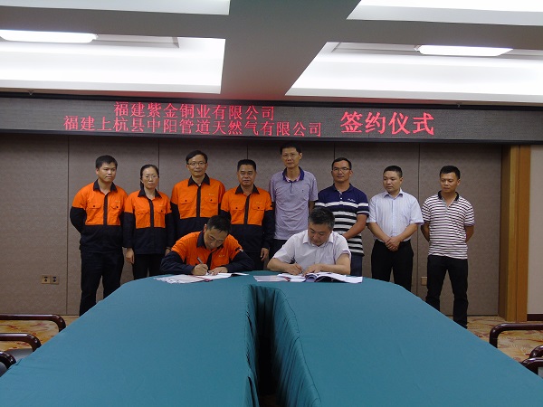 2017年6月27日下午四點三十分,福建紫金銅業(yè)有限公司、福建上杭縣中陽管道天然氣有限公司合作簽約儀式在上杭大酒店隆重舉行,紫金銅業(yè)總經(jīng)理周建輝、上杭中陽總經(jīng)理向榮等領(lǐng)導(dǎo)參加簽字儀式,雙方分別簽訂了天然氣供氣及工程施工合同。