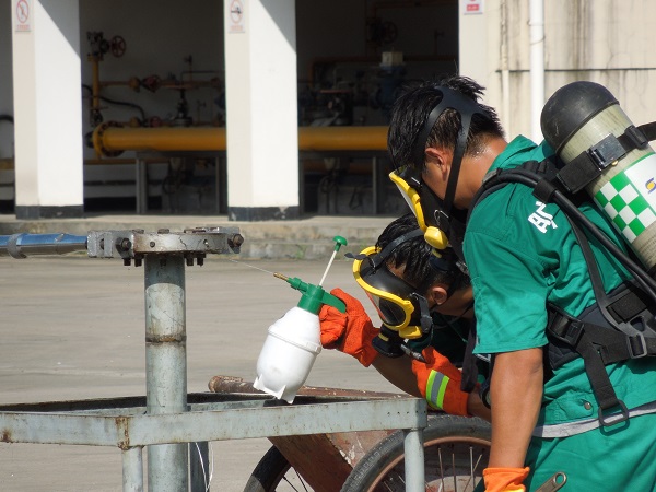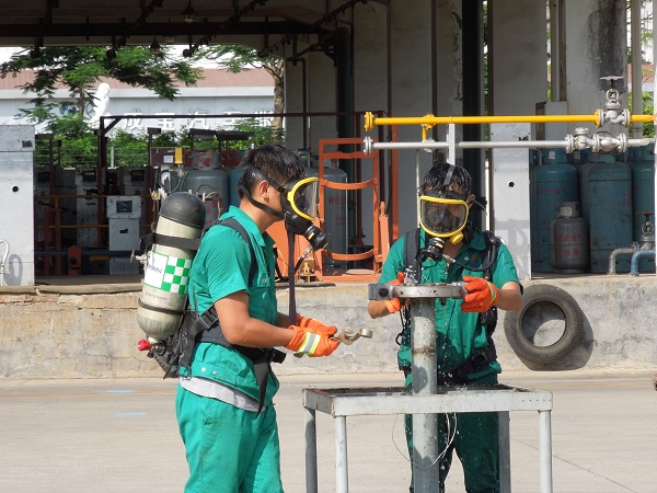 本次演練項目為:LPG1#儲罐底部出口閥被恐怖分子破壞造成液化石油氣泄漏事故的應(yīng)急處置。主要流程為:模擬事故發(fā)生、制服歹徒、報警、應(yīng)急啟動、人員疏散、安全警戒、消防噴淋驅(qū)散稀釋燃?xì)鉂舛?、搶險堵漏及最終解除警戒等。在總指揮的領(lǐng)導(dǎo)下,所有參演人員嚴(yán)肅認(rèn)真、有條不紊地進(jìn)行各個演練步驟,歷時一個小時后,演練圓滿結(jié)束。