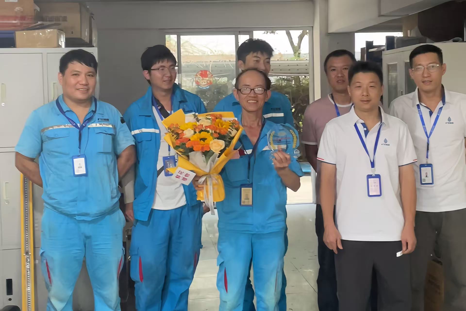 為了感謝退休員工多年來(lái)的辛勤付出,表達(dá)對(duì)他們的敬意和祝福,在2025年6月30日和2025年7月23日,曠遠(yuǎn)能源股份有限公司莆田燃?xì)馐聵I(yè)部分別為兩位退休員工舉辦了“歲月如歌 感恩有你”的榮退儀式。莆田燃?xì)馐聵I(yè)部副總陳濤濤、退休員工的部門負(fù)責(zé)人一起為兩位退休員工送上了帶向日葵的鮮花、印有 “光榮退休” 的蛋糕、帶有公司 logo 的水晶杯以及曠遠(yuǎn)能源副總裁兼莆田燃?xì)馐聵I(yè)部總經(jīng)理柯軍親筆簽名的感恩祝福..