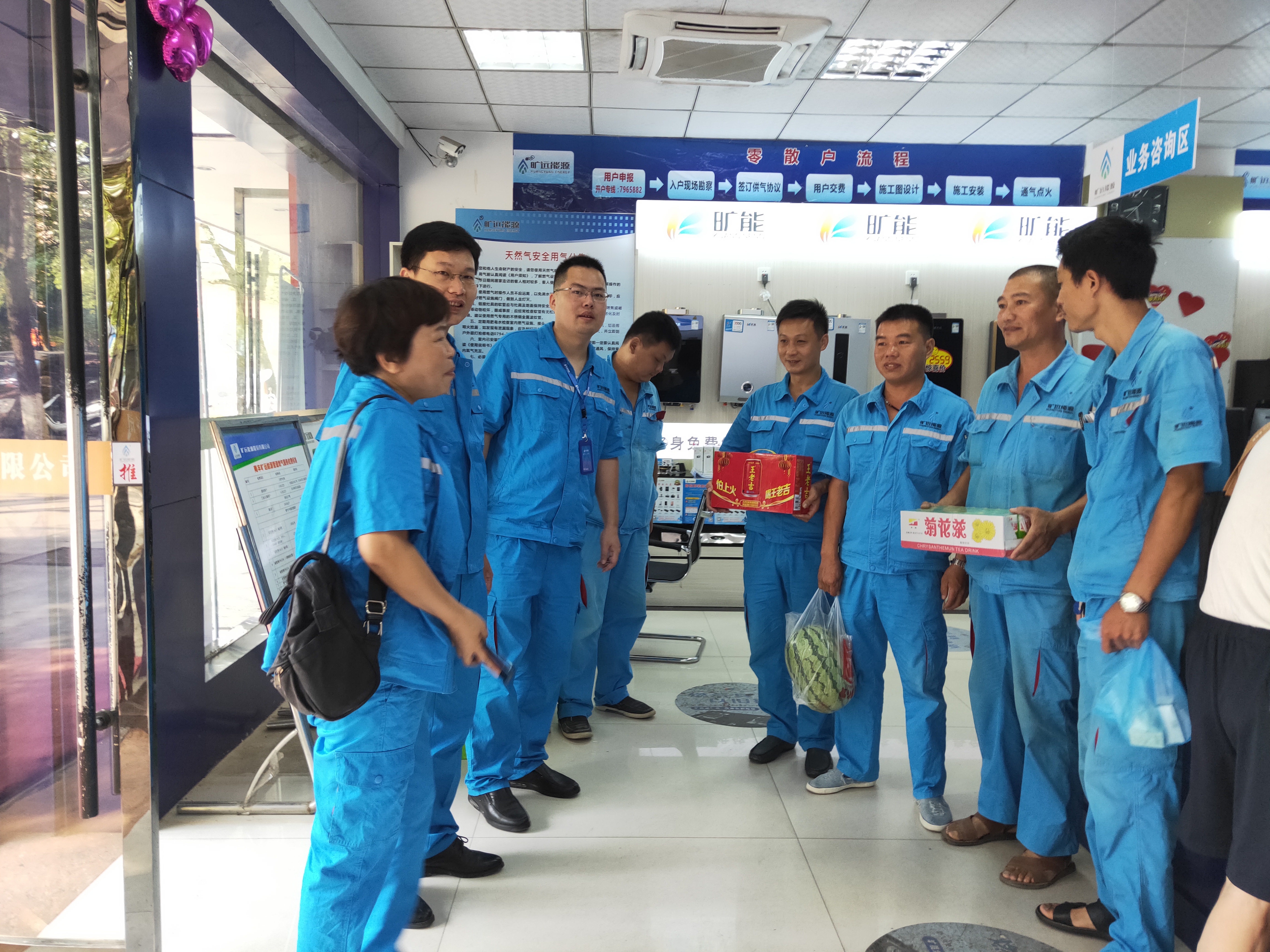 雖然立秋已過,但是莆田的天氣依舊酷暑難耐,為體現(xiàn)公司的人文關懷,確保一線員工的身體健康。8月20日,能源總裁辦組織慰問小組走訪一線,為高溫酷暑扔堅持崗位奮戰(zhàn)在一線的員工,送上夏日的一縷清涼。20日上午,人力資源中心總監(jiān)胡豫疆、總裁辦主任楊貞,在曠遠能源莆田事業(yè)部總經(jīng)理向榮的帶領下,分別來到營業(yè)廳、管網(wǎng)部、維修組、荔園加氣站、涵西加氣站、黃石門站、氣源廠,為員工們送上飲料、藥品等物資。慰問小組詳細詢..